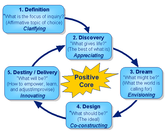 In finding Appreciative Inquiry (AI), I have found a valuable tool that transcends into so much more as the focus upon the positive core moves conversations and inquiry forward. The promise and potential for constructive use of AI and its relevant practices are limitless.